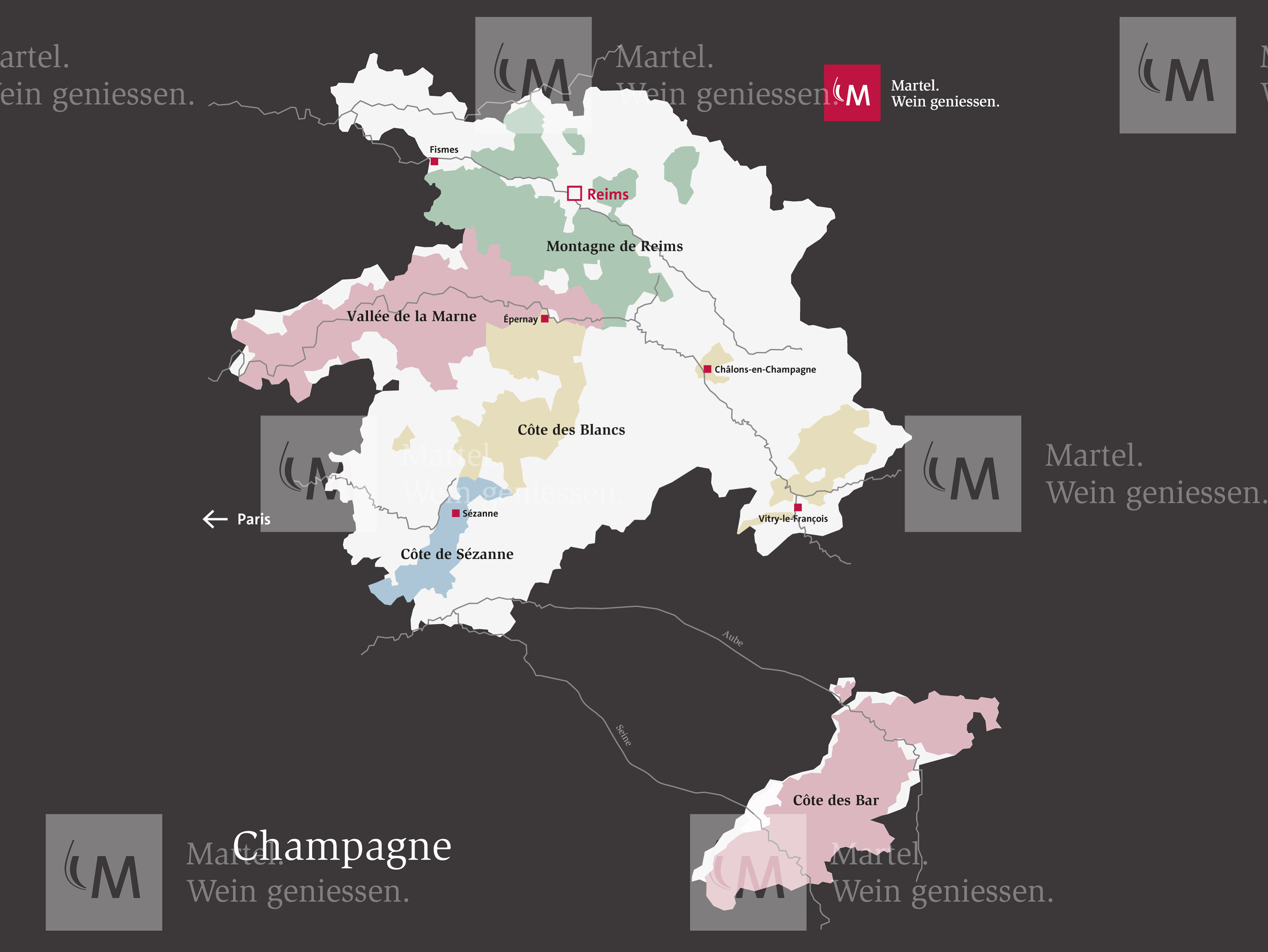 Die Champagne ist das nördlichste Weinbaugebiet Frankreichs, rund 140 Kilometer östlich von Paris gelegen. Die Region gibt auch dem berühmtesten Schaumwein der Welt den Namen: Champagner. Die Rebflächen umfassen total ca. 34’000 Hektar, die mit den drei zugelassenen Sorten Pinot Noir (38%), Pinot Meunier (33%) und Chardonnay (28%) bestockt sind. Es ist die weltweit grösste Fläche, die unter einer einzigen kontrollierten Ursprungsbezeichnung zusammengefasst ist.