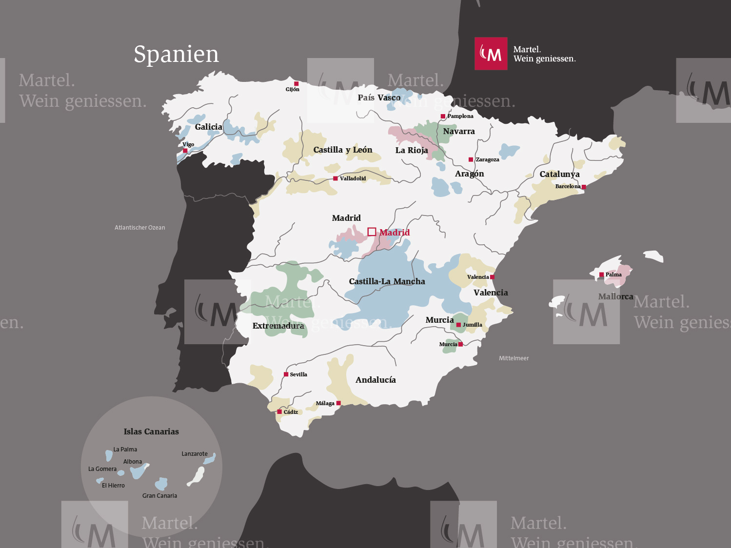 Der Klimawandel und die vielerorts damit verbundene Hitze und Trockenheit stellt den Weinanbau auf der iberischen Halbinsel auf die Probe. Doch Spanien antwortet mit Höhenlagen bis über 1'000 Meter, mit resistenten, uralten Buschreben, mit biologischer Bewirtschaftung und klugen Bewässerungskonzepten. Das freut uns von Martel: Spanischer Wein entwickelt sich weiter und wird immer besser.